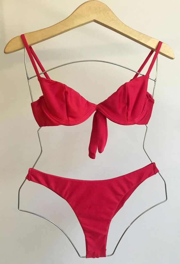 ´Sutiã com aro e regulador nas alças. Sem bojo. Calcinha básica com costura embutida. Tecido texturizado.